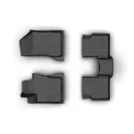 - Description: These all-weather floor mats are a robust design made to completely cover the foot well areas in the front and second rows. Available in Black with two front row mats and two second row interlocking mats. All mats feature the Jeep logo.
