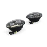 - Description: LED Headlamps provide brilliant performance and off-road durability. These long-life lamps provide excellent road side lighting, a defined beam pattern and feature the Jeep logo. The lamps come in a set of two and are for use in U.S. (non-daytime running lamps) and Canada (daytime running lamps) only. Matching fog lamp kits are sold separately.