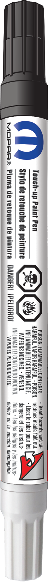 The 5-in-1 Mopar touch-up paint pen is the perfect tool for all your touch-up repairs on Chrysler, Dodge, Jeep, Ram, Fiat and Alfa Romeo vehicles. The Mopar touch-up paint pen contains 9ml (0.3 fl. oz.) of single stage paint. It is a one compartment dual applicator pen that allows the paint to be applied with either a fiber tip applicator or a brush applicator. The clearcoat is built into the paint, so only one step is required to complete the touch-up repair. The fiber tip applicator is beveled and can accomplish repairs to small nicks, thin scratches, and wider scratches. The brush applicator is another way to repair blemishes on your vehicle. This tool is ergonomic and easy to use. Get a perfect match to the original factory finish when repairing that unsightly scratch or chip on your vehicle!